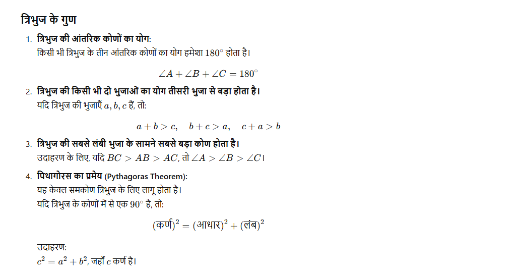 यह नोट्स त्रिभुज की सभी महत्त्वपूर्ण अवधारणाओं, प्रमेयों और व्यावहारिक उदाहरणों को संक्षेप में प्रस्तुत करता है। इनका अध्ययन करके परीक्षा में अच्छे अंक प्राप्त किए जा सकते हैं।
