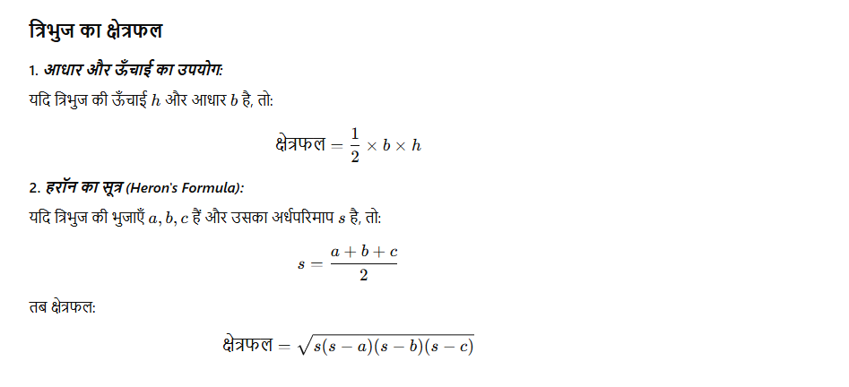 - भवन निर्माण में त्रिभुज की समानता और क्षेत्रफल के सूत्रों का उपयोग किया जाता है।
