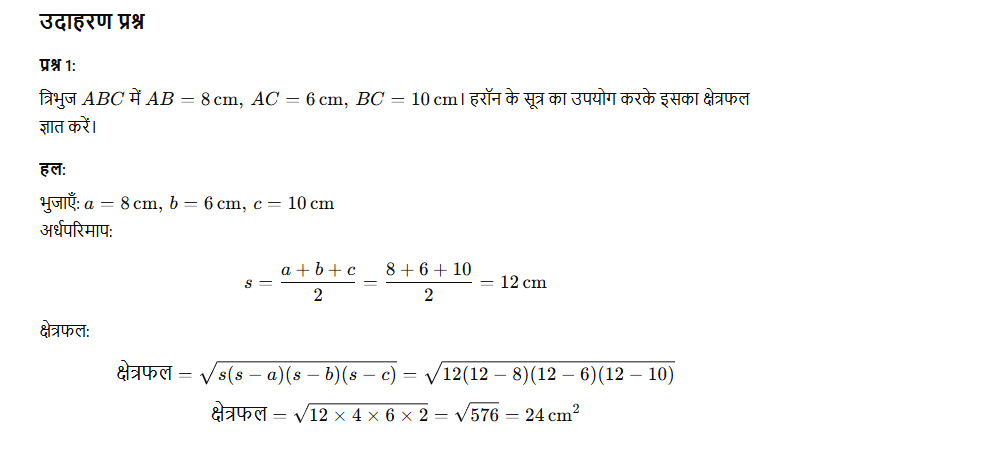 - त्रिभुज के क्षेत्रफल और हरॉन के सूत्र का उपयोग खेतों और प्लॉट्स के मापन में किया जाता है।
