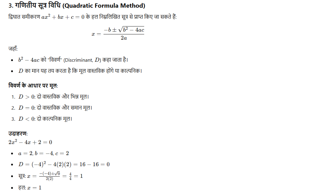 द्विघात समीकरण कक्षा 10 के गणित का एक महत्वपूर्ण अध्याय है। इसे समझना और इसके प्रकार व हल करने के तरीके सीखना बोर्ड परीक्षा में अच्छे अंक प्राप्त करने के लिए आवश्यक है। यह नोट्स आपको द्विघात समीकरण के सिद्धांत, प्रकार, और उनके हल के तरीकों को विस्तार से समझाने के लिए तैयार किया गया है।