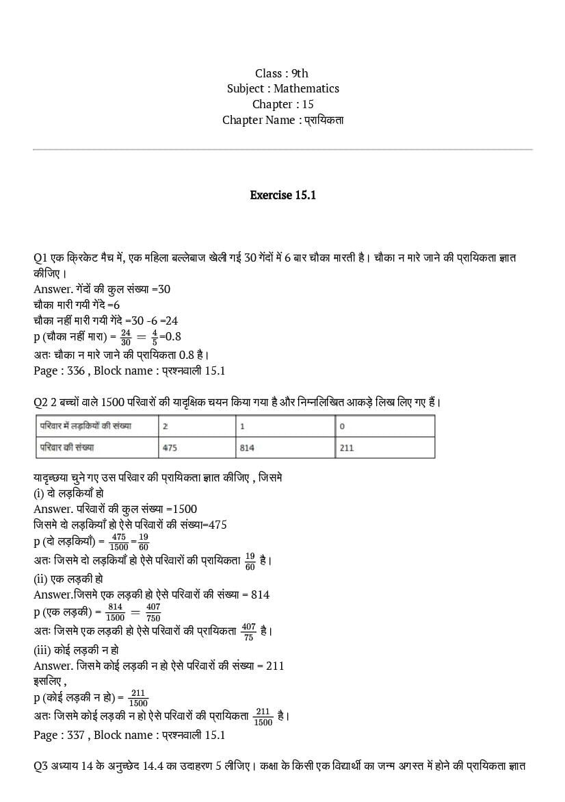 कक्षा 9वीं गणित: प्रायिकता (Probability)