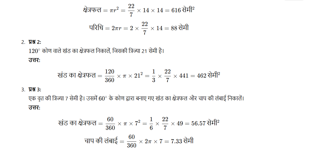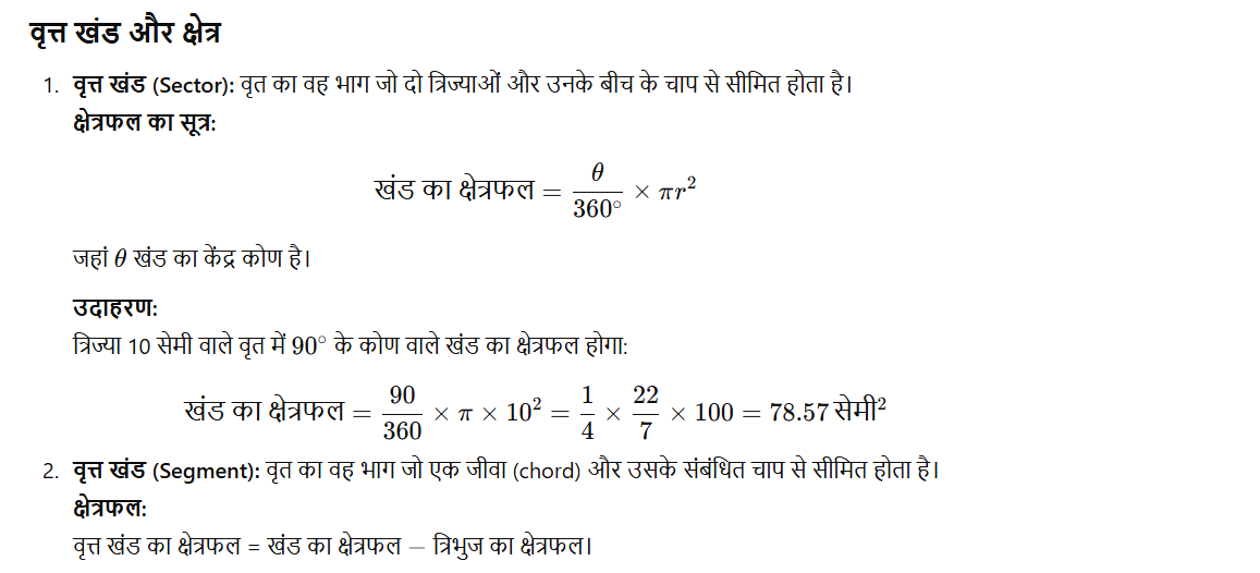 वृतों से सम्बंधित क्षेत्रफल
