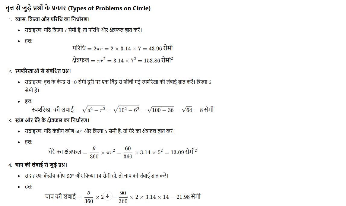 • वृत्त से संबंधित प्रश्न प्रतियोगी परीक्षाओं में अक्सर पूछे जाते हैं।